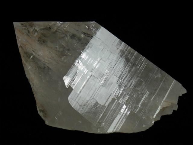 柱面をよく見ると複数の結晶が接合して一体化して大きく成長したカテドラルクォーツの特徴が僅かに見られる