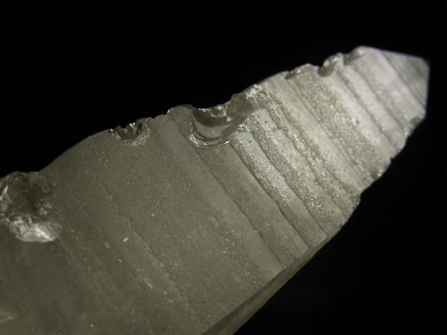 結晶の縦方向の成長スピードが速すぎて柱面の成長が追い付かず、柱面と錐面が交互に成長を繰り返してきたもので、柱面と錐面の角度の違いで光が反射して確認しやすくなります。