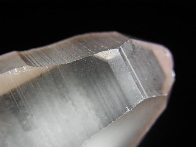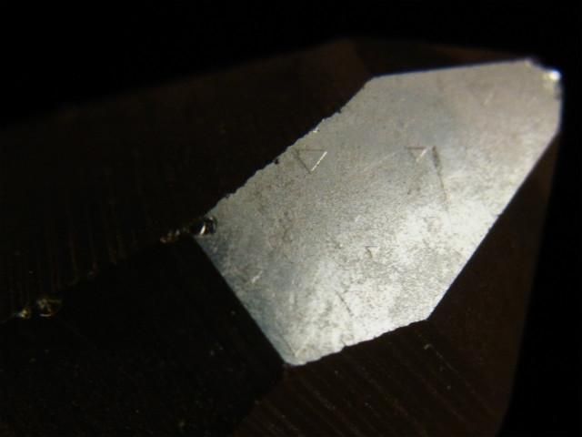 水晶は二酸化ケイ素で構成されており、これが分子レベルで繋がり結晶して、やがて成長丘と呼ばれる三角形△の形で成長し、この成長丘が沢山連なり、やがて大きな錐面が構成されます。