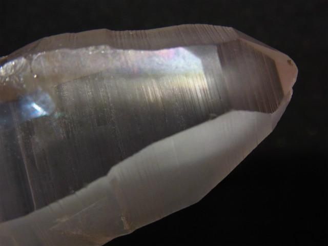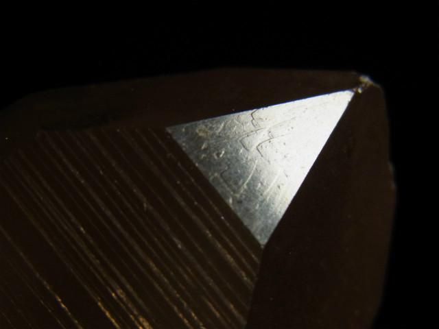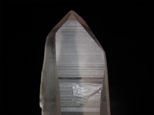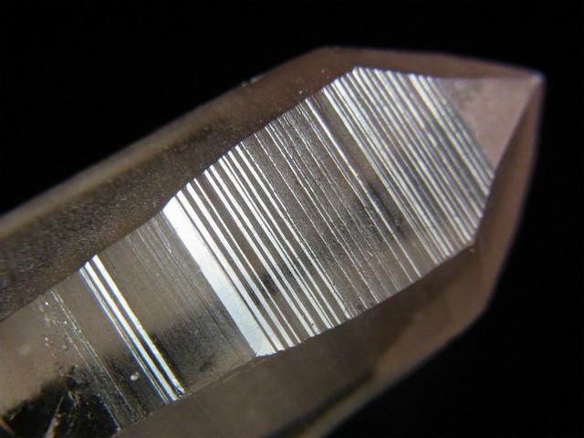 結晶の縦方向の成長スピードが速すぎて柱面の成長が追い付かず、柱面と錐面が交互に成長を繰り返してきたもので、柱面と錐面の角度の違いで光が反射して確認しやすくなります。
