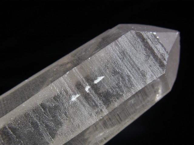 結晶の縦方向の成長スピードが速すぎて柱面の成長が追い付かず、柱面と錐面が交互に成長を繰り返してきたもので、柱面と錐面の角度の違いで光が反射して確認しやすくなります。