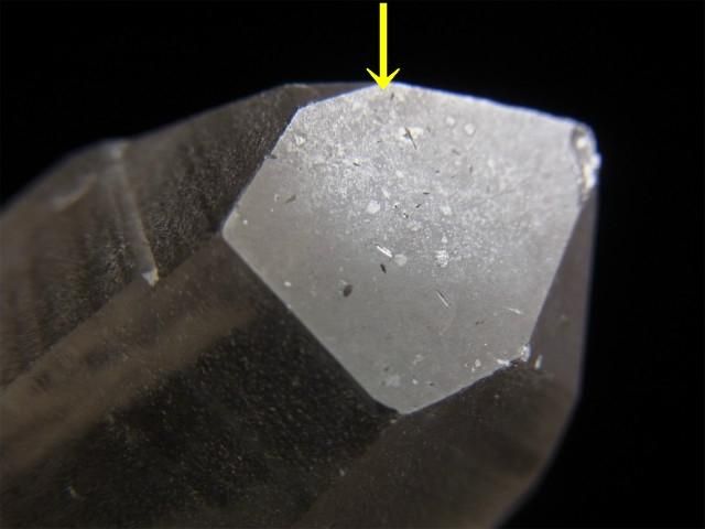 未研磨結晶の為、トップに少しダメージがありますが、トップ錐面が7角形と3角形の錐面が交互に並んだ7−3−7−3−7−3の配列になっているダウクリスタルです。