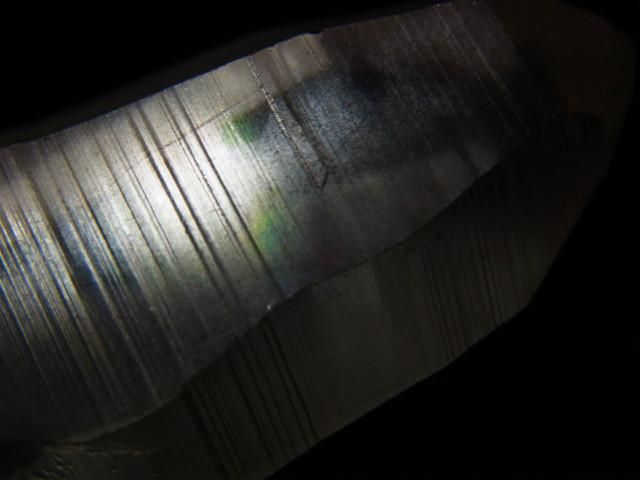結晶の縦方向の成長スピードが速すぎて柱面の成長が追い付かず、柱面と錐面が交互に成長を繰り返してきたもので、柱面と錐面の角度の違いで光が反射して確認しやすくなります。