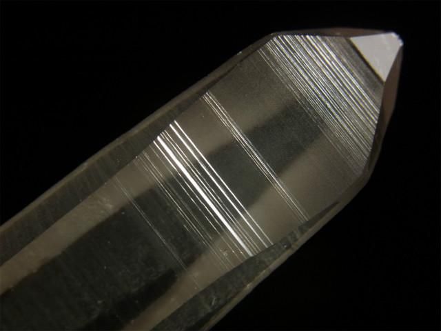 結晶の縦方向の成長スピードが速すぎて柱面の成長が追い付かず、柱面と錐面が交互に成長を繰り返してきたもので、柱面と錐面の角度の違いで光が反射して確認しやすくなります。