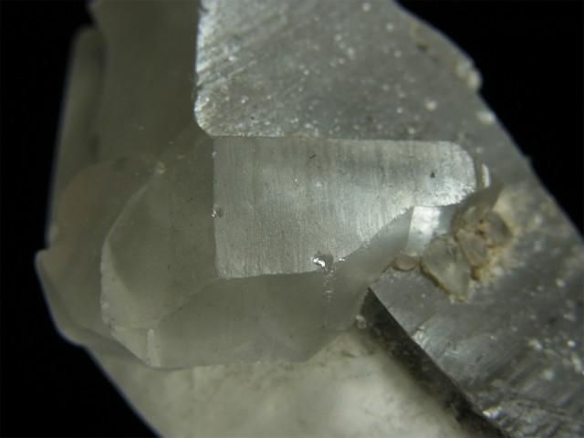 柱面及び大きい錐面の側面に斜めの階段状のレムリアンリッジの段差が見られますが、これはかつて錐面として成長していた部分の名残りです。