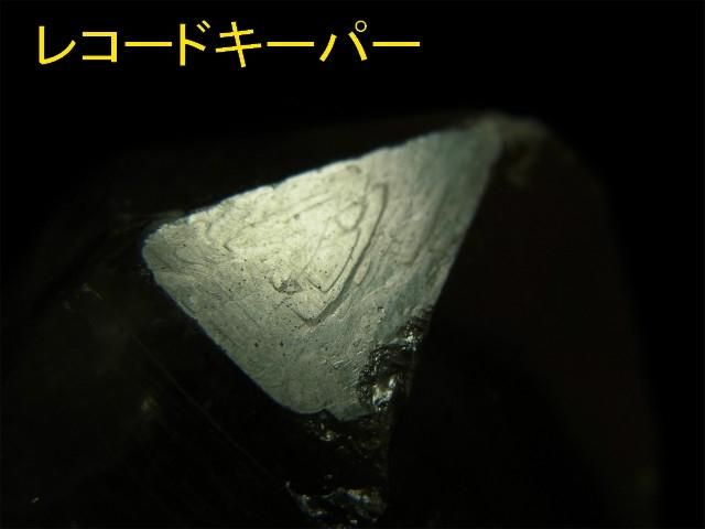 細い方のメインフェイス縦長錐面のレコードは薄いので、光に反射させてやっと分かる程度です。