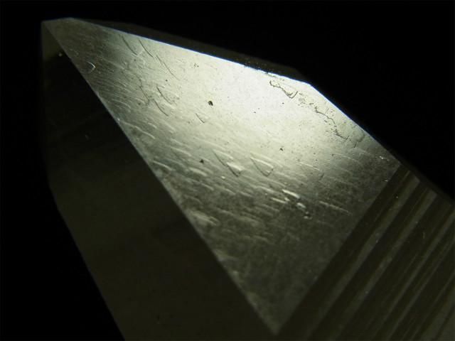 未研磨結晶の為、グランドレコード下側の柱面他に剥離痕があります。