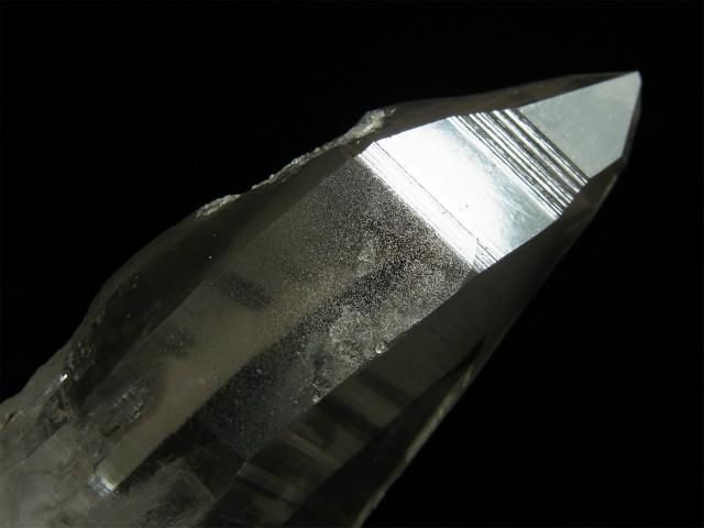 結晶の縦方向の成長スピードが速すぎて柱面の成長が追い付かず、柱面と錐面が交互に成長を繰り返してきたもので、柱面と錐面の角度の違いで光が反射して確認しやすくなります。