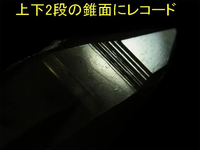 このレムリアンリッジの斜めの段差は、かつて錐面を形成しようとしていた名残りです。斜めの段差にレコードが出ることは稀ですが、レコードは錐面に現れる現象なので、理にかなっています。