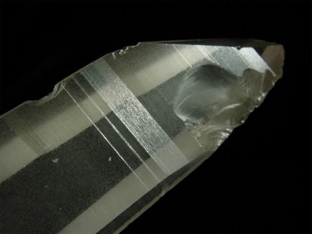 結晶の縦方向の成長スピードが速すぎて柱面の成長が追い付かず、柱面と錐面が交互に成長を繰り返してきたもので、柱面と錐面の角度の違いで光が反射して確認しやすくなります。