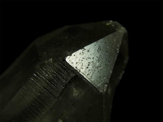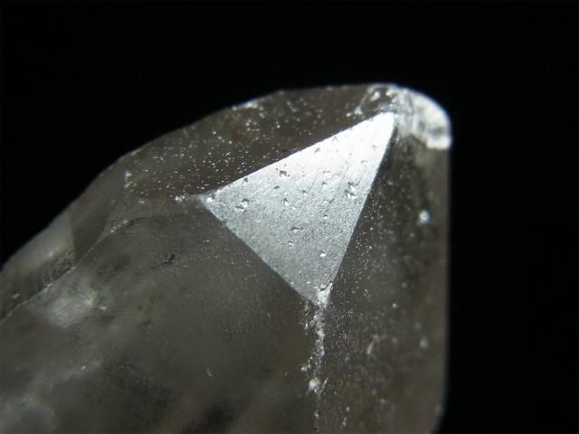 水晶は二酸化ケイ素で構成されており、これが分子レベルで繋がり結晶して、やがて成長丘と呼ばれる三角形△の形で成長し、この成長丘が沢山連なり、やがて大きな錐面が構成されます。
