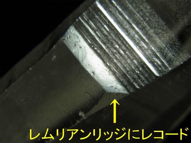 また、レムリアンリッジの斜めの段差にもごく薄いレコードが複数出ています。斜めの段差の右端、X面の斜め上と真ん中辺りになります。薄くて、小さいサイズなので、光に反射させてルーペで見て分かる程度です。
