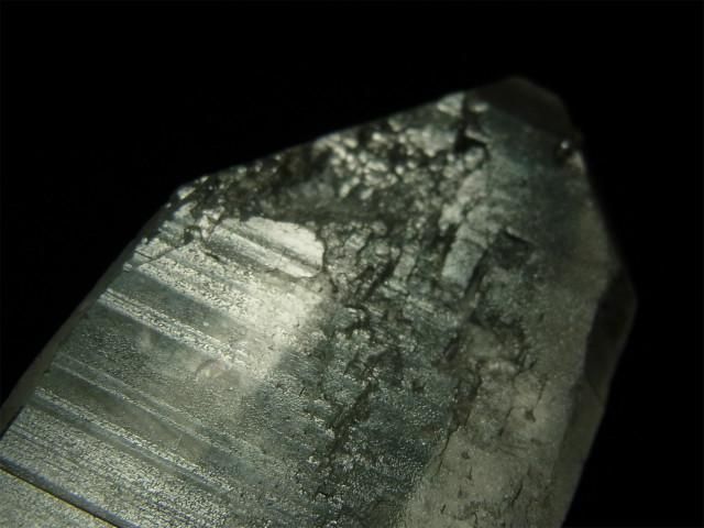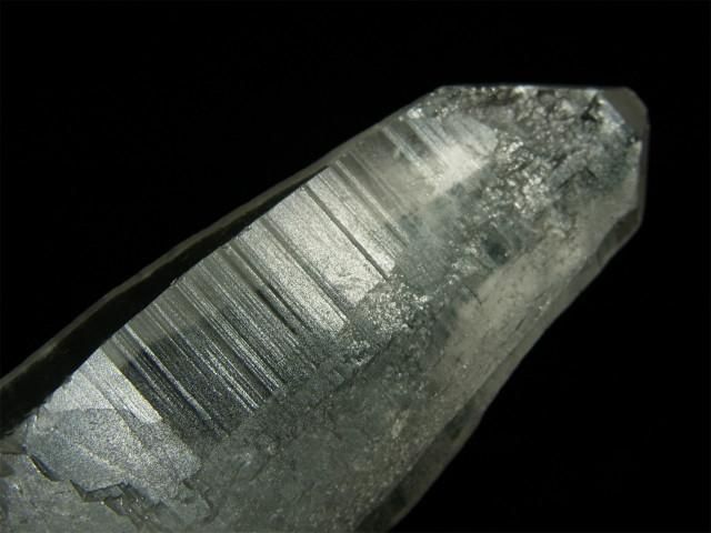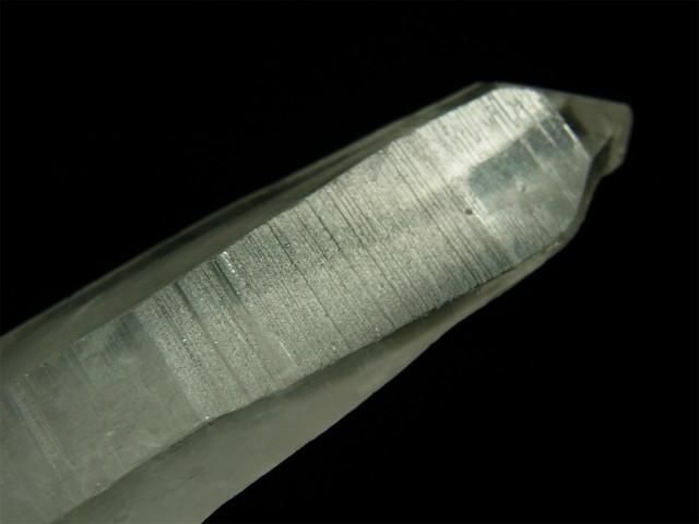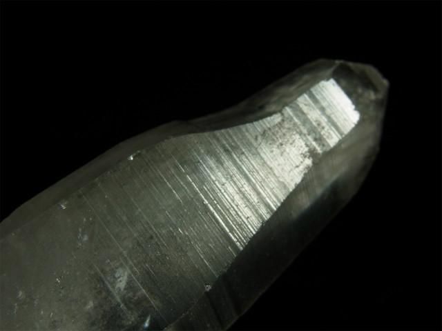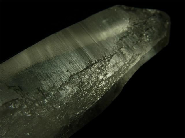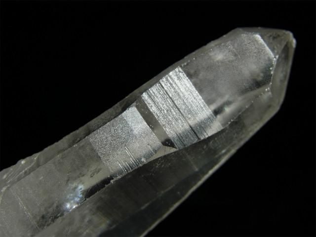 結晶の縦方向の成長スピードが速すぎて柱面の成長が追い付かず、柱面と錐面が交互に成長を繰り返してきたもので、柱面と錐面の角度の違いで光が反射して確認しやすくなります。