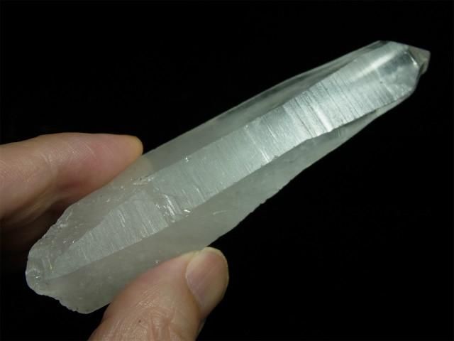 ブラジル、ミナスジェライス州、セーラ・デ・カブラル(カブラル山脈)で産出された水晶で、結晶の側面にレムリアンリッジと呼ばれるバーコード状の条線(成長線)があるのが特徴です。表面はレムリアンリッジの影響ですりガラス状の柱面と透明感のある柱面の両方が見られたりしますが、結晶内部はかなり透明感があります。