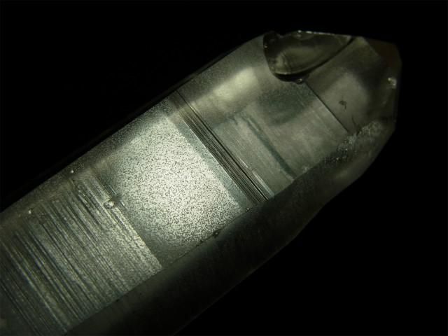 結晶の縦方向の成長スピードが速すぎて柱面の成長が追い付かず、柱面と錐面が交互に成長を繰り返してきたもので、柱面と錐面の角度の違いで光が反射して確認しやすくなります。