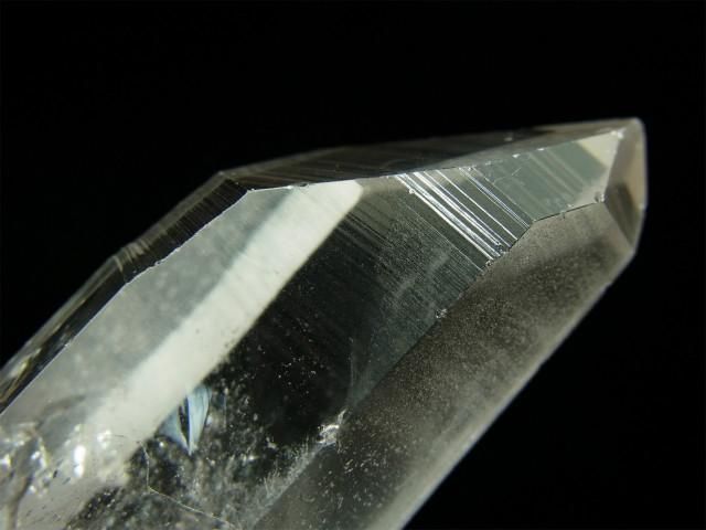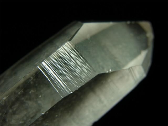 結晶の縦方向の成長スピードが速すぎて柱面の成長が追い付かず、柱面と錐面が交互に成長を繰り返してきたもので、柱面と錐面の角度の違いで光が反射して確認しやすくなります。