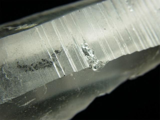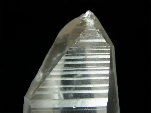 結晶の縦方向の成長スピードが速すぎて柱面の成長が追い付かず、柱面と錐面が交互に成長を繰り返してきたもので、柱面と錐面の角度の違いで光が反射して確認しやすくなります。