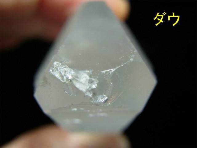 雷に撃たれたことにより、トップに溶かされた痕跡と衝撃でチップした痕跡がありますが、七角形と三角形の錐面が交互に並んでいるダウクリスタルです。