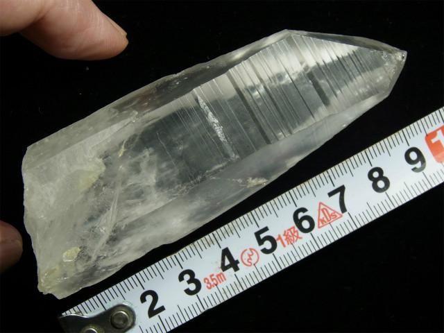 ブラジル、ミナスジェライス州、セーラ・デ・カブラル(カブラル山脈)で産出された水晶で、結晶の側面にレムリアンリッジと呼ばれるバーコード状の条線(成長線)があるのが特徴です。表面はレムリアンリッジの影響ですりガラス状の柱面と透明感のある柱面の両方が見られたりしますが、結晶内部はかなり透明感があります。