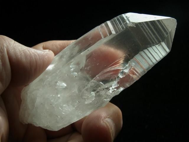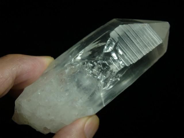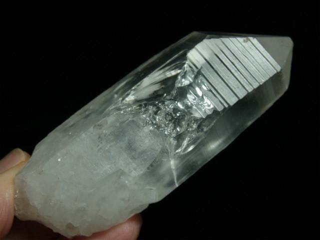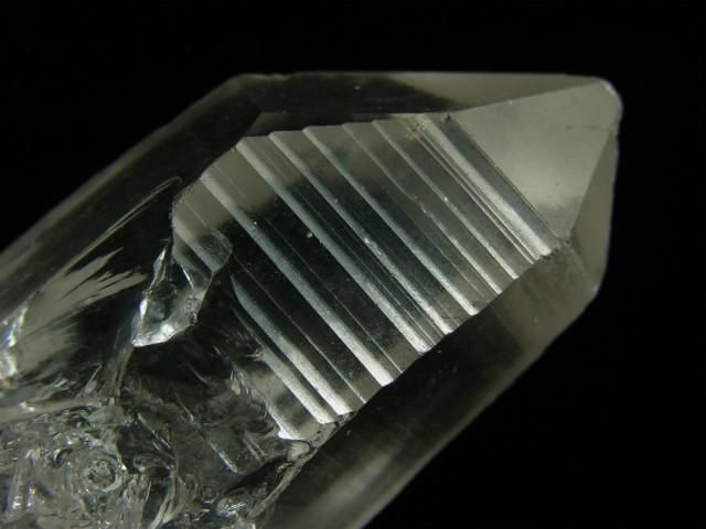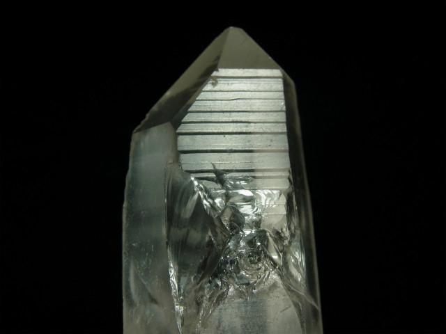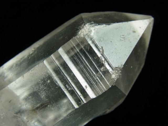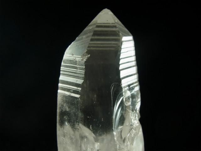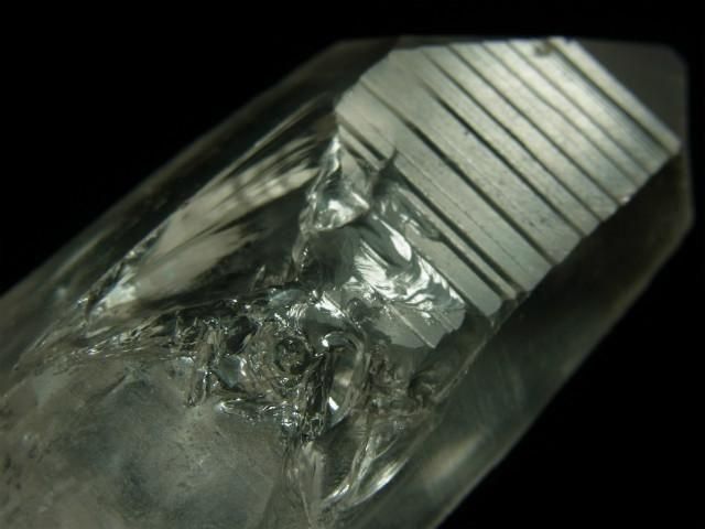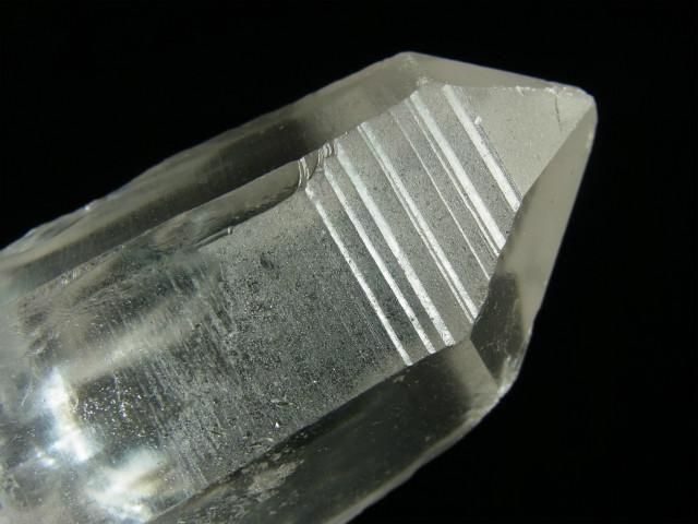 結晶の縦方向の成長スピードが速すぎて柱面の成長が追い付かず、柱面と錐面が交互に成長を繰り返してきたもので、柱面と錐面の角度の違いで光が反射して確認しやすくなります。