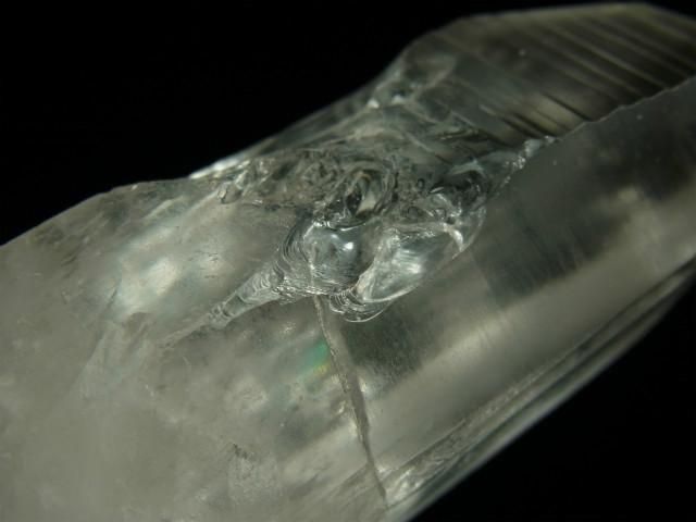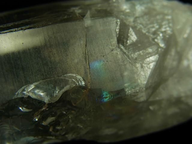 雷の痕跡のやや右下側(溶かされたエッジの右側の柱面)にブルーのレインボーが浮かび上がります。