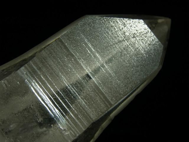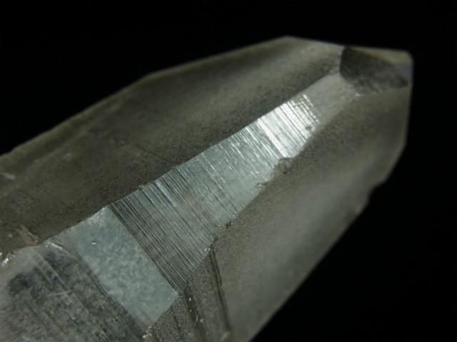 結晶の縦方向の成長スピードが速すぎて柱面の成長が追い付かず、柱面と錐面が交互に成長を繰り返してきたもので、柱面と錐面の角度の違いで光が反射して確認しやすくなります。
