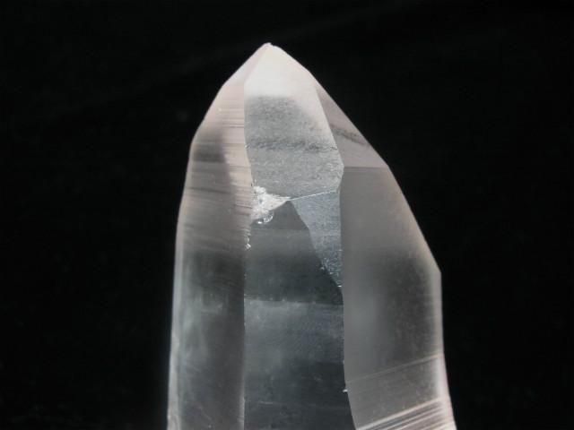 やや細い方のトップ側、透明度が高くやや幅が狭い3つの柱面右上にX面が出ている右水晶です。