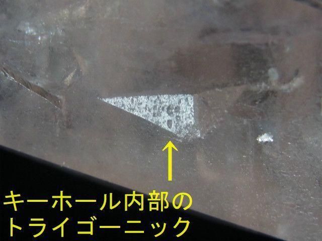 キーホールが見られるトップ側の全ての錐面と大きいタイムリンクフューチャー面(S面)及びキーホール内部に微細なトライゴーニックが多数出現しています。