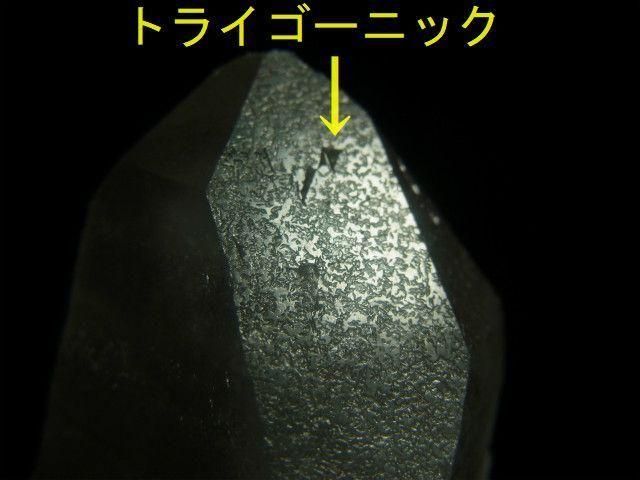 トライゴーニックは溶かされた水晶(蝕像水晶)の錐面に稀に出ることがある逆三角形▼の凹みです。