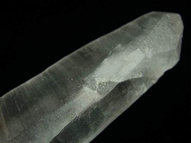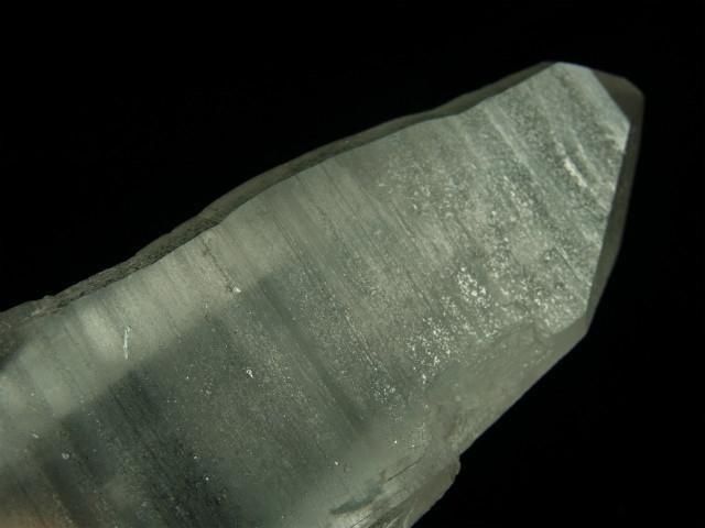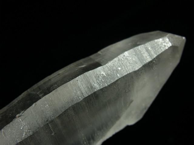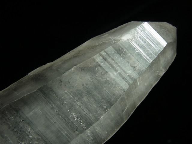 見事なレムリアンリッジと斜めの階段状の段差が出ている透明度が高く照りのある柱面と、レムリアンリッジが緻密に出てややすりガラス状に見える柱面の両方が見られます。