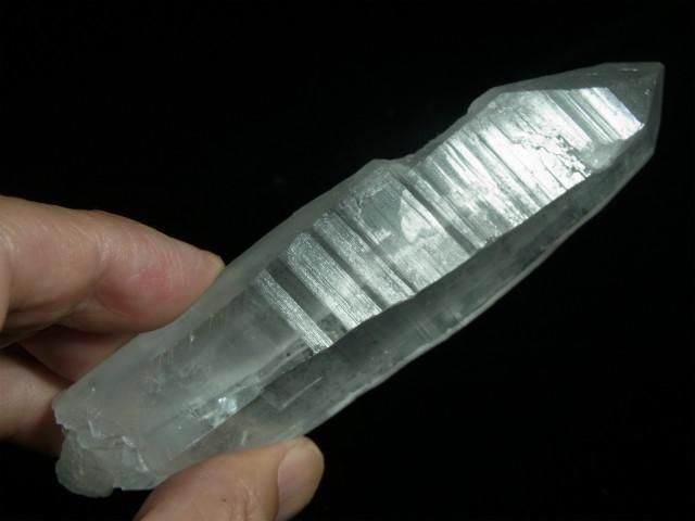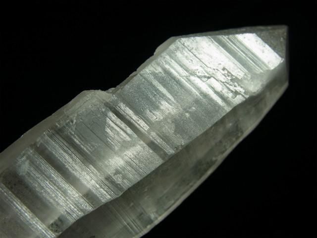 結晶の縦方向の成長スピードが速すぎて柱面の成長が追い付かず、柱面と錐面が交互に成長を繰り返してきたもので、柱面と錐面の角度の違いで光が反射して確認しやすくなります。
