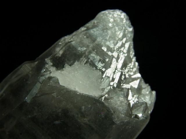 地殻変動など何らかの原因で一度壊れた部分が、後から新しい結晶が形成されることによって自己修復されたものです。多数の小さめの錐面やピークが見られます。