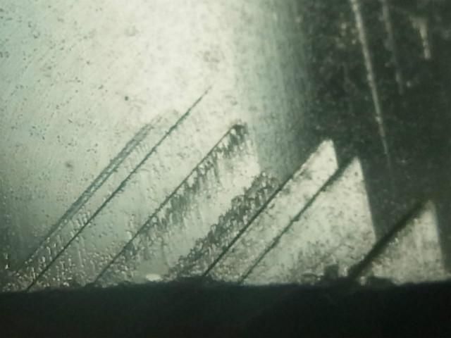 また、微細なレコードの左側(蝕象が少ないスペース)には複数層重なったレコードの痕跡が見受けられます。