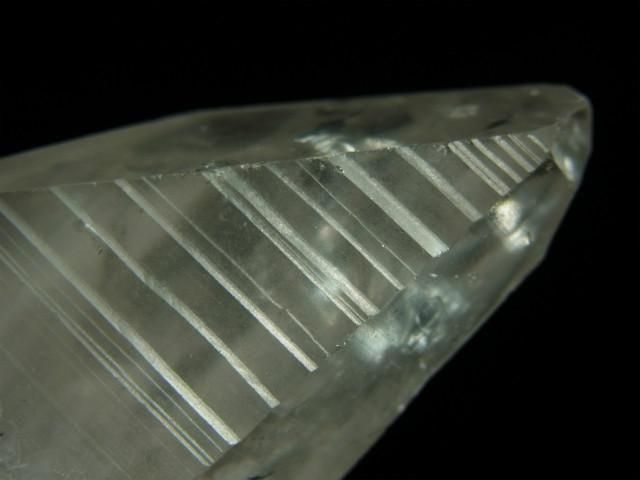 結晶の縦方向の成長スピードが速すぎて柱面の成長が追い付かず、柱面と錐面が交互に成長を繰り返してきたもので、柱面と錐面の角度の違いで光が反射して確認しやすくなります。