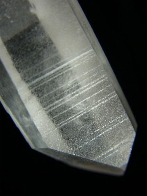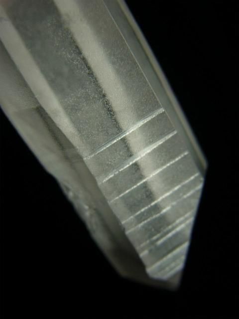 結晶の縦方向の成長スピードが速すぎて柱面の成長が追い付かず、柱面と錐面が交互に成長を繰り返してきたもので、柱面と錐面の角度の違いで光が反射して確認しやすくなります。