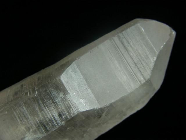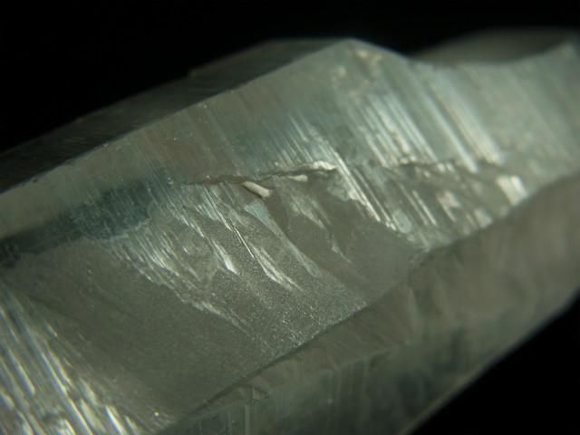 結晶の縦方向の成長スピードが速すぎて柱面の成長が追い付かず、柱面と錐面が交互に成長を繰り返してきたもので、柱面と錐面の角度の違いで光が反射して確認しやすくなります。