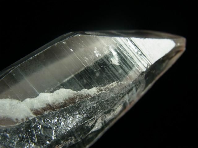 結晶の縦方向の成長スピードが速すぎて柱面の成長が追い付かず、柱面と錐面が交互に成長を繰り返してきたもので、柱面と錐面の角度の違いで光が反射して確認しやすくなります。