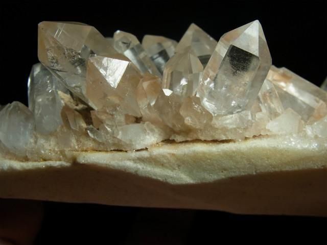 二番目に大きい結晶は錐面右下側にX面が出ている右水晶です。